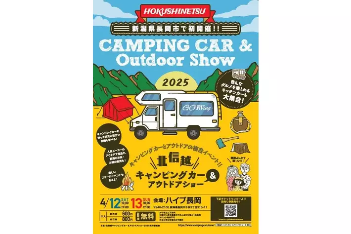 北信越キャンピングカー&アウトドアショー実行委員会(事務局:有限会社カトーモーター、株式会社ブシロードムーブ、株式会社ネオプロジェクト)は、2025年4月12日(土)~4月13日(日)に「北信越キャンピングカー&アウトドアショー2025」を開催することをご報告いたします。