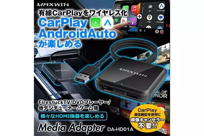 ディスプレイオーディオ搭載車でHDMI入力の無い車両でも、FirestickTV/DVDプレーヤー/地デジチューナー/ゲーム機などのHDMI機器を接続し楽しむことができます。