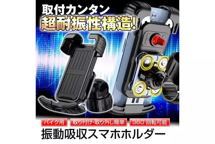 超耐振性構造!取付カンタンな防振スマートフォンホルダーです。