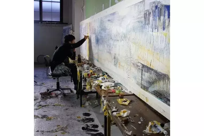 今回、過去の映像作品と合わせて摩擦や速度のダイナミズムをテーマにした絵画作品を発表予定。移動や加速で生じるエネルギーの痕跡をとらえ、動きと時間の残像を表現する。