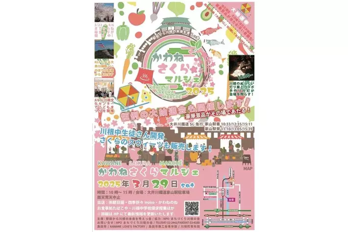 「かわねさくらマルシェ」は2022年から、大井川鐡道の家山駅周辺の桜並木が咲き始める時期に、地域活性のために開催されているイベントで、大井川電機の本社は「かわねさくらマルシェ」会場と同じ家山地区にあります。