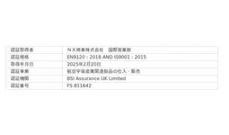 NX商事、航空宇宙品質マネジメント規格の認証(EN9120)を取得