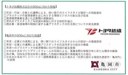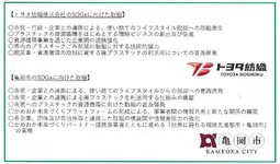 この度、この主旨に賛同していただいたトヨタ紡織株式会社(カーボンニュートラル環境センターCCNO:鈴村浩己氏)と、「かめおか未来づくり環境パートナーシップ協定」を締結し、市中から廃棄物として回収されたプラスチックを自動車部品に活用するための技術検証に連携して取り組みます。