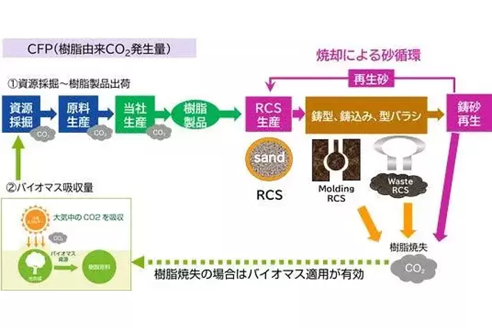 - RCSバインダー樹脂は砂の再生時に焼却されますが、本製品は既存品と同様に砂再生を阻害しません。