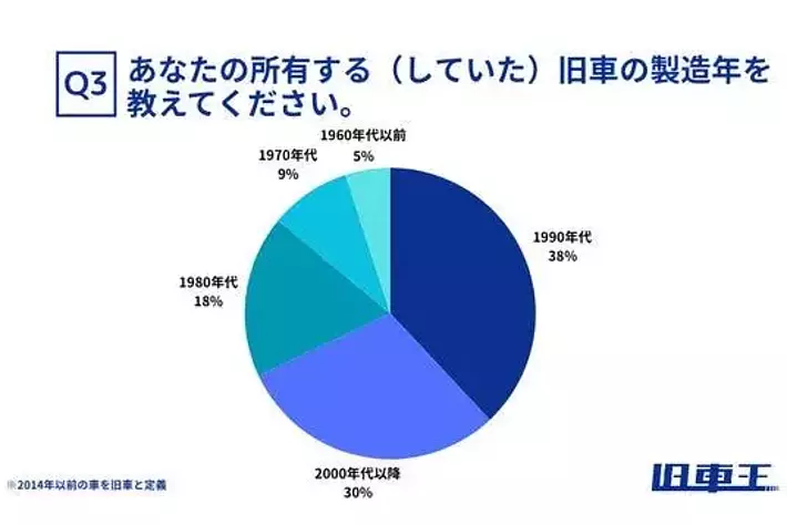 ・所有する旧車の製造年は「1990年代」が最多(38%)