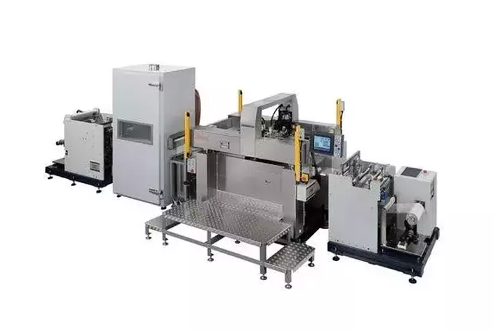 特に薄いフィルム素材に高精度で印刷を行う事に特化したロール材料への印刷装置です。 UV乾燥装置、ラミネート装置、プレス装置、スリット装置等による複合ラインで印刷から加工の製品工程を