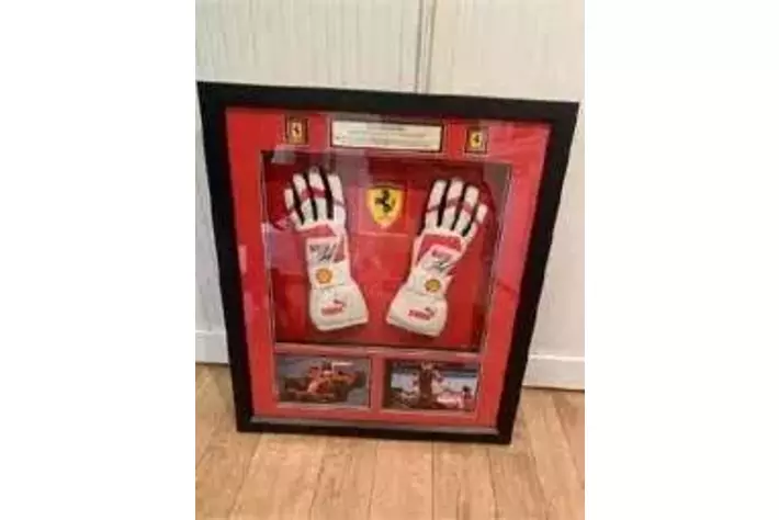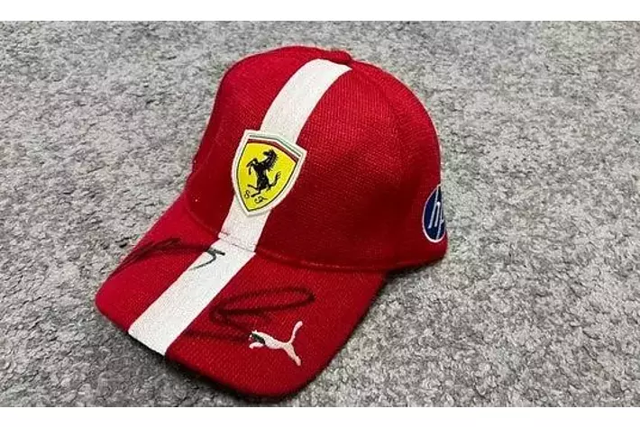 2007年のキミ・ライコネン選手のサイン入りフェラーリグローブ、シャルル・ルクレール選手やルイス・ハミルトン選手のサイン入りフェラーリキャップなど、希少なアイテムが揃っています。
