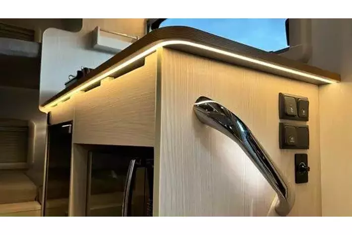 マルチルームに大きなミラー、収納棚、ハンガーバー、ソーラーベンチレーターを装備し、朝のメイクアップや濡れた衣類を乾かしやすい環境を整えました。マルチルームには外部アクセスドアも装備されているので外から濡れたものを出し入れするのにとても便利です。
