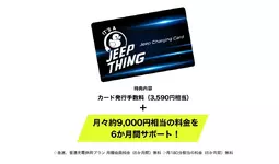 さらに、期間中にジープ正規ディーラーにてアベンジャーをご成約いただいた場合、10万円購入サポート※および先着500名様*限定の充電カードをプレゼントします。