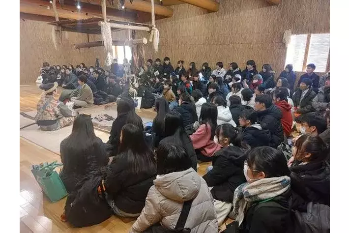 ※ウポポイ探究学習プログラム:ウポポイで働く職員や登別・洞爺エリアの地元の方との交流を中心に、アイヌ民族の多様な歴史や文化に触れ、自然環境や火山、温泉、観光、地域産業などを知ることにより、「共生社会」を実現させるために必要なことを参加者一人一人が考えるプログラムです。実施主体:公益財団法人アイヌ民族文化財団