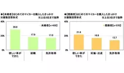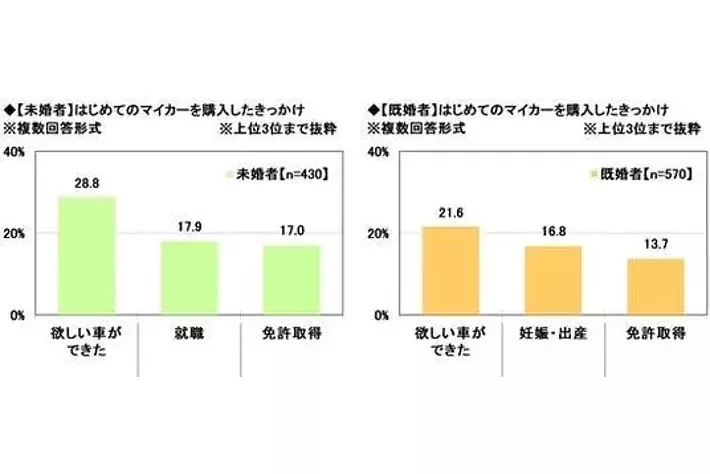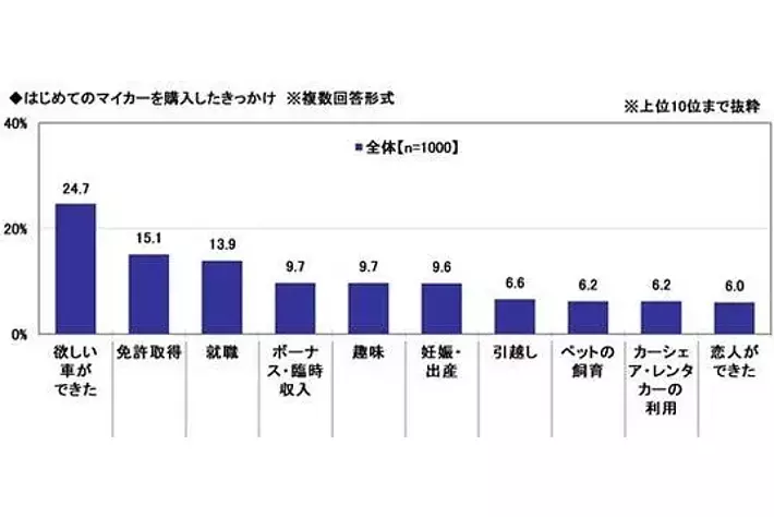 ◆はじめてのマイカーを購入したきっかけ 1位「欲しい車ができた」2位「就職」