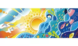 最優秀作品に選出した、吉田 茜さん(大阪芸術大学デザイン学科3年)の作品「サンシャインワーフsea」は、3月29日(土)に除幕式にて披露し、新たな壁画サインとしてサンシャインガーデンの外壁に設置いたしました。