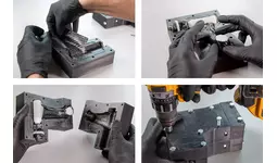 まず、最終製品の成形に使用する金型を設計・製造します。本プロジェクトでは、Lynxter社のIDEX方式のフィラメント3Dプリンター「S300X - FIL11 | FIL11」を使用し、耐久性に優れたポリカーボネート(PC)を材料として金型を製造しました。IDEX方式を活用することで、左右対称のパーツを同時にプリントし、製造時間を短縮することが可能となりました。