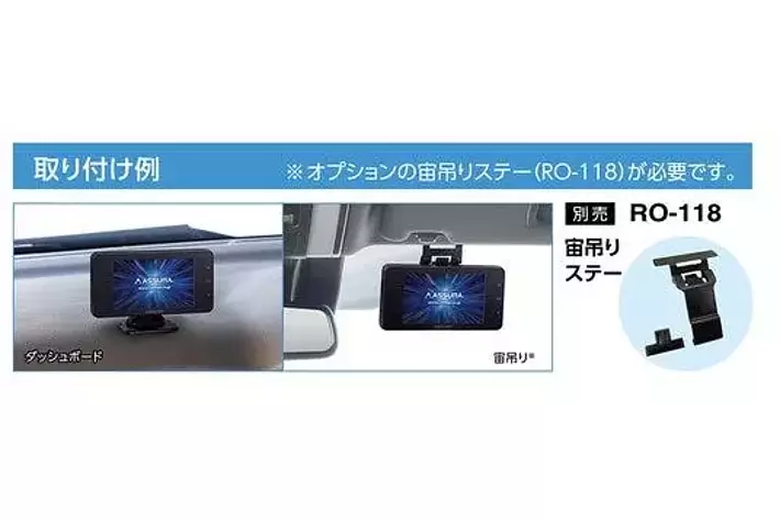ダッシュボードはもちろん、車内のルーフ付近に宙吊りして取り付けも可能です。