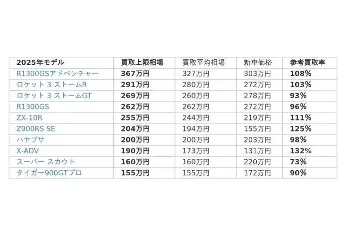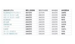 高く売れる2025年モデルのバイクTOP 10 (2025年3月末時点)