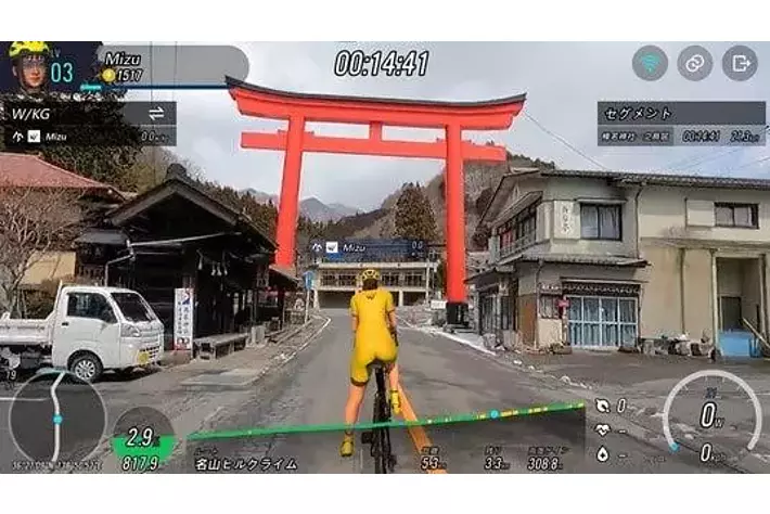 さらにWhiizUは、日本語対応かつ3Dによる仮想空間と実写、両方のコースが楽しめます。特に国内イベントの人気コースやナショナルサイクルルートなどの実写映像を多数収録しており、イベント前の試走やリアルに近い体験を通じた実践的なトレーニングができます。