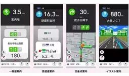 スマートフォンで使用する際に、進行方向と距離、おすすめの走行車線を常にフリップで表示する「フリップガイドモード」を選択できるようになりました。複雑な交差点や分岐などの間違いやすい場所では地図やイラストを同時に表示するので、音声案内と組み合わせることで迷わずに目的地まで到着できます。