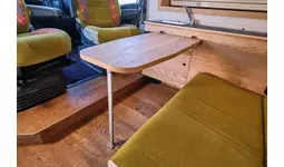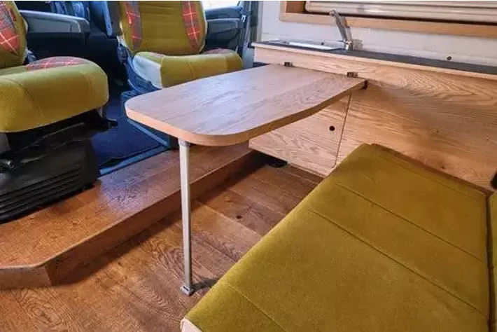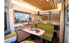 テーブルや電装パッケージやサブバッテリー、夏に嬉しい家庭用エアコンや、冬の車中泊を快適にするFFヒーターも完備していますので、夏も冬も快適にキャンピングカー旅をお楽しみいただけます。