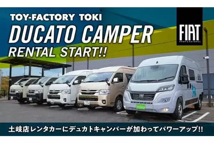 ハイエースベースのキャンピングカー製造台数が国内首位であり、キャンピングカーの新しい楽しみ方を提案する株式会社トイファクトリー(本社:岐阜県可児市、代表取締役:藤井昭文)は、フィアットプロフェッショナル正規ディーラーとして日本仕様フィアットデュカトの車両販売、及び、キャンピングカー架装・販売、および、キャンピングカーレンタルサービス「ShareCamper(シェアキャンパー)」を運用しています。