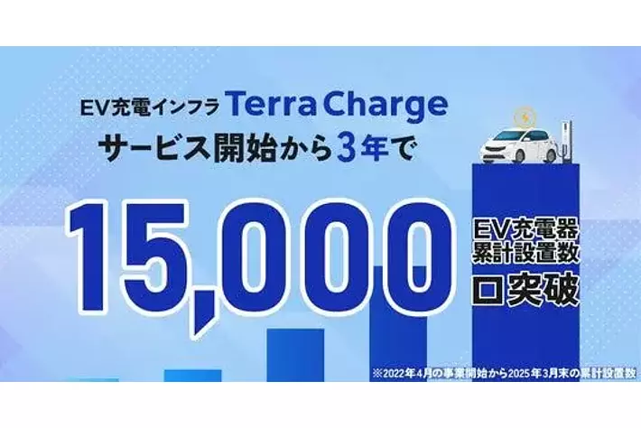 電気自動車(EV)向け充電サービス「Terra Charge(テラチャージ)」を展開するTerra Charge 株式会社(本社:東京都港区、代表取締役社長:徳重徹、以下、当社)は、2025年3月末に日本国内のEV充電器の累計設置数が15,668口*となり、15,000口を突破したことをお知らせします。