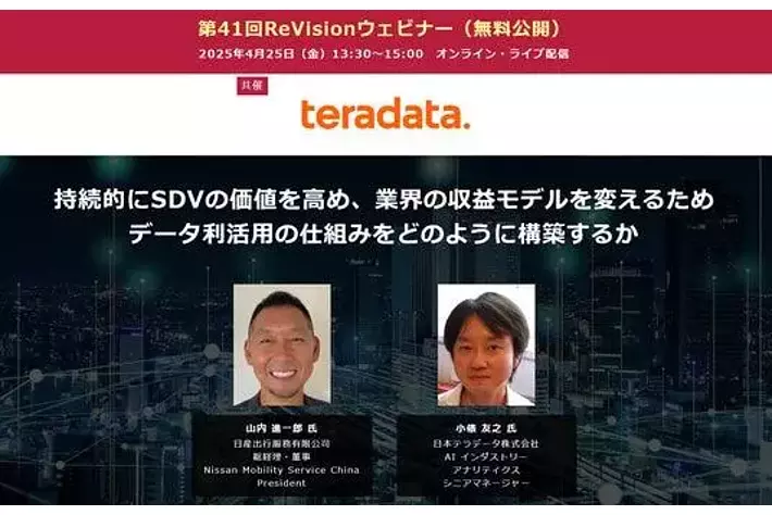 【無料WEBセミナー】 日産出行服務、日本テラデータから講師を迎え、「SDVの価値を高めるためのデータ利活用の仕組みづくり」をテーマに無料配信 ― 4月25日(金)