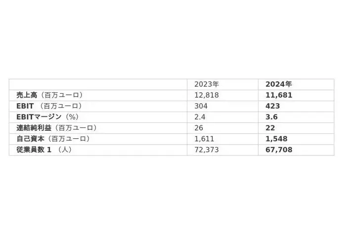 ・ 売上高は117億ユーロに減少するも、連結純利益は順調に推移。