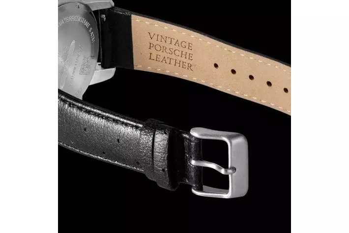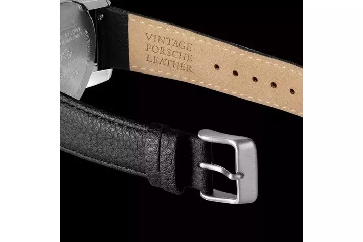 同じドイツを母国とする自動車ブランド、ポルシェの希少なヴィンテージレザーをストラップに使用した数量限定モデルです。