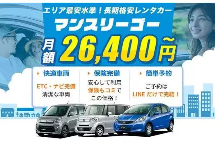 【車を格安で長期レンタル♪】「月額26,400円~」の長期専門レンタカー事業「マンスリーゴー」が関東圏で本格スタート!