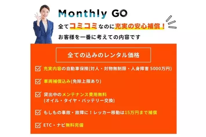 マンスリーゴーは、格安レンタカーサービスでありながら「安かろう悪かろう」を一切排除。