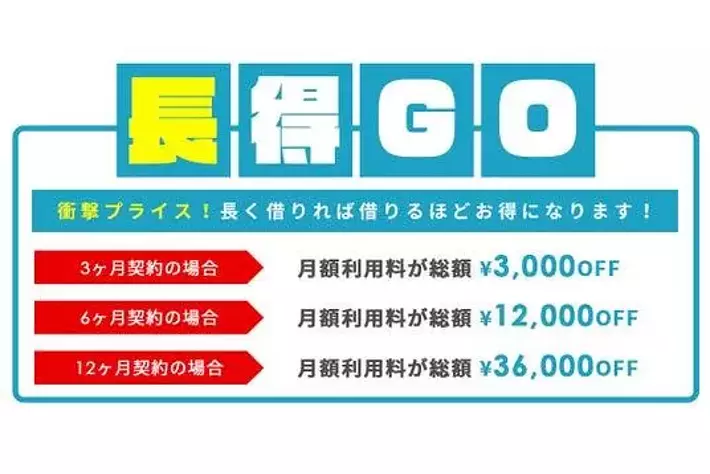 【マンスリーゴー特徴 1. 】長く借りるほどお得な「長期割プラン」もご用意