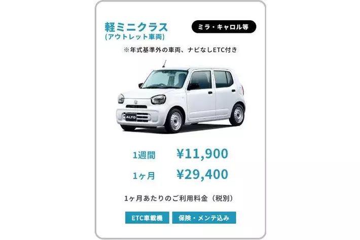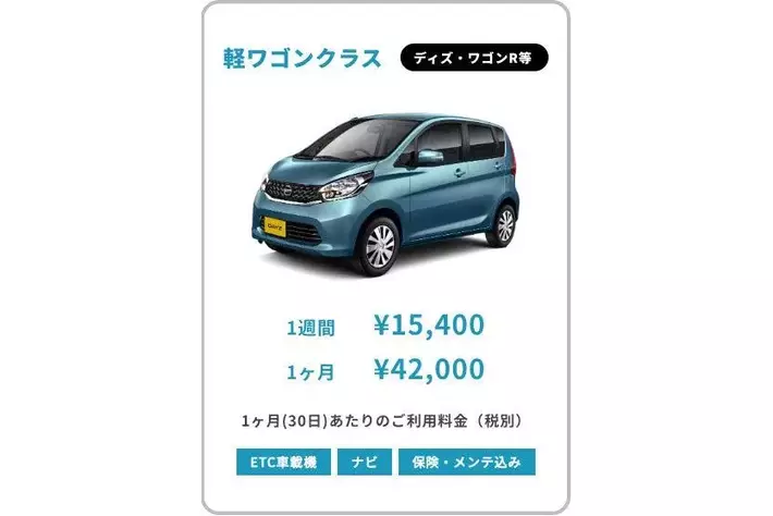 「長く借りるほどお得になる」料金設計により、従来の短期レンタカーやカーシェアよりもリーズナブルに車を使えることが特長です。
