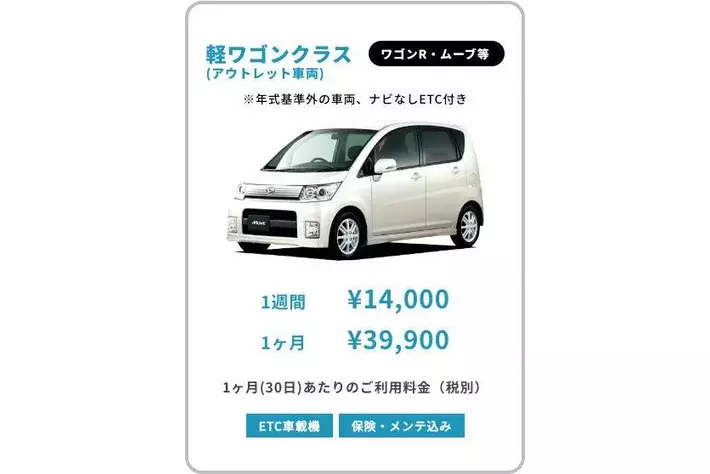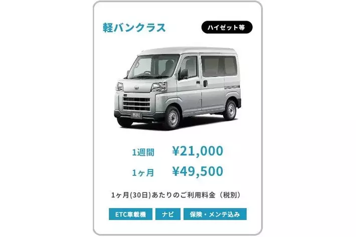 さらに貸代中のメンテナンス費用・ナビ/ETC・保険料など他社ではオプションになる費用も全てコミコミの安心価格!軽ワゴンクラス以上の車両に関してはETC・ナビも全車両無料完備!