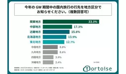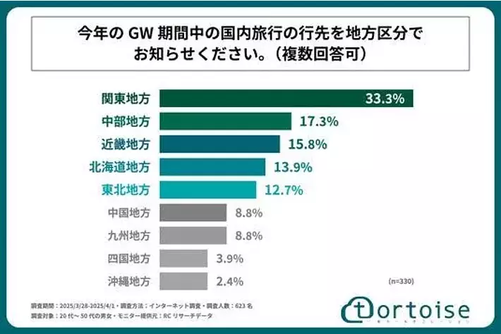 2025年のGW、国内旅行で人気の地方1位は「関東地方」!株式会社トータスが「GW期間中の国内旅行と交通手段に関する」に関する調査を実施!