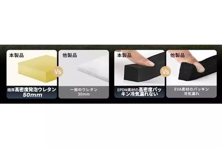 また、厚さ50mmの高密度発砲ウレタンを採用しており、保冷効果も抜群です。パッキン部分には耐久性に優れたEPDM素材を使用しており、長く安心してお使いいただけます。