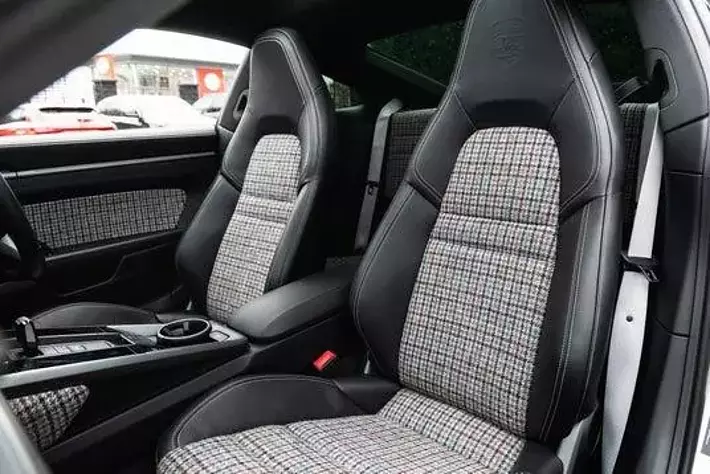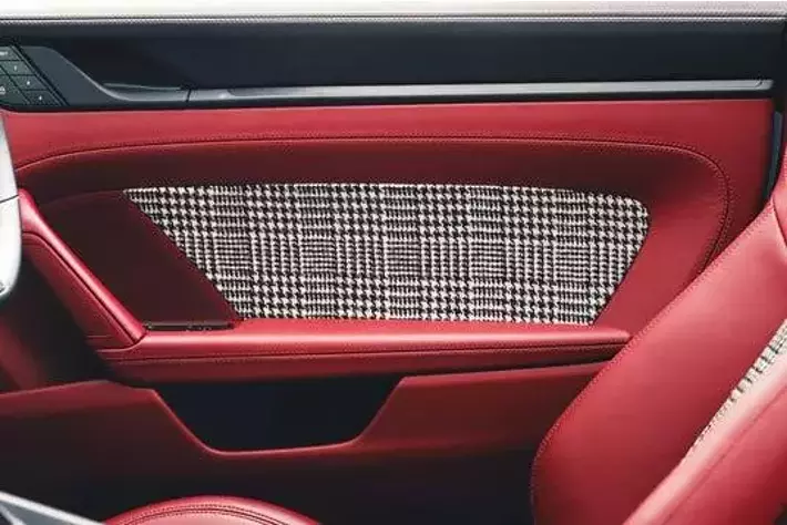 上質なヘリテージツイードや、クラシックな千鳥格子(ハウンドトゥース)といった、永く愛され続ける布地を、現代的な車内空間に美しく融合させました。