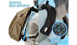 「既存のバックパックメッシュサポーター(背中蒸れんゾ)(DBT617-BK)」と、「新開発の3Dメッシュショルダーパッド(DBT642-BK)」を組み合わせたセットアイテム。