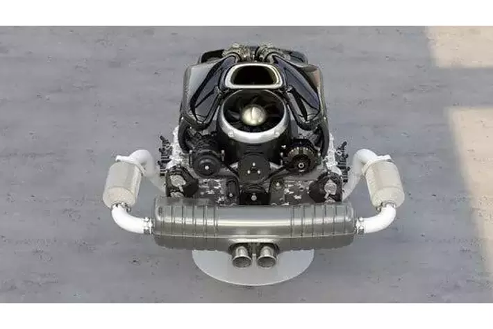 ・ タイプ964エンジンをベースに生まれ変わったフラット6エンジン。排気量4.0L、気筒あたり4バルブ、可変バルブタイミング、水冷シリンダーヘッド、空冷シリンダーを採用。