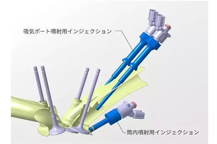 1. 吸気ポート噴射による筒内混合気の均質化と筒内噴射による高出力化