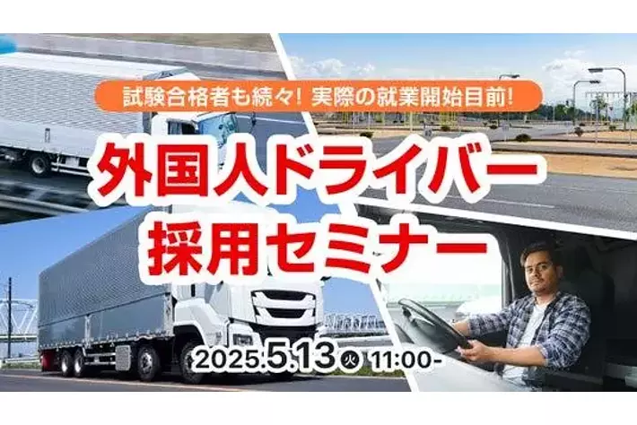 タイトル:試験合格者も続々!実際の就業開始目前!「外国人ドライバー採用セミナー」開催日時:2025年5月13日(火) 11:00 ~ 12:00 ※10分前から入室可能