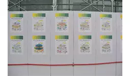 【福島日産】EV GARDEN建設地に、子どもたちの塗り絵を掲出