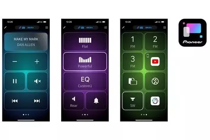 ・ 楽曲の再生/停止やイコライザー設定、FMラジオへの切り替えなど、40種類の操作キーからよく使うものを選択してスマートフォンの画面上に配置できる専用アプリ「PxLink」に対応。「Apple CarPlay」「Android Auto」の地図画面などを表示したまま、本機の多彩な機能をスマートフォンで操作できます。