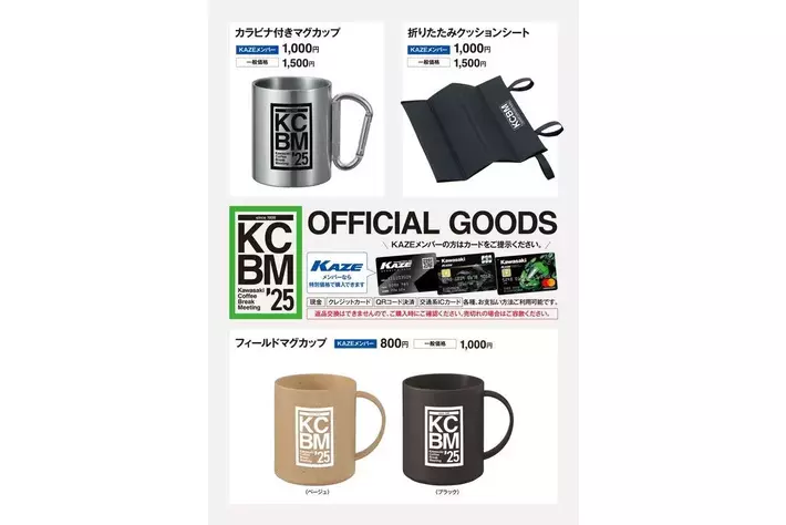 「KCBMオフィシャルマグカップ」をはじめとしたKCBMグッズを販売。カワサキコーヒーブレイクミーティング会場でしか手に入らない限定グッズを手に入れよう!