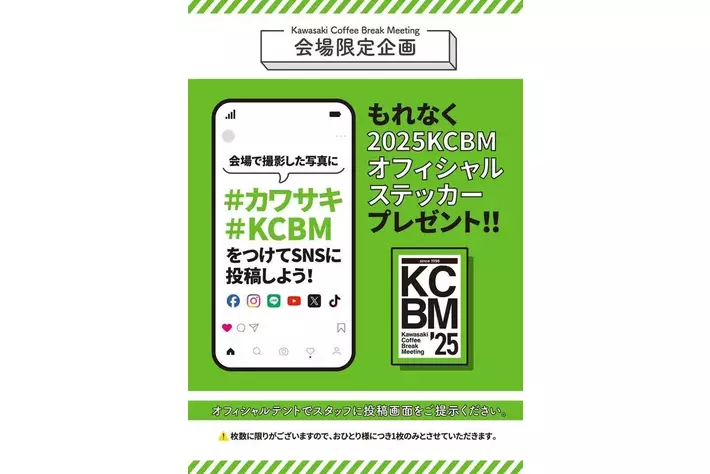 会場内で撮影した写真にハッシュタグ「#カワサキ」「#KCBM」をつけてSNS投稿してくださった方に、「2025KCBM限定ステッカー」をプレゼントいたします。