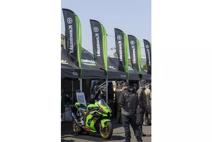 カワサキ プラザブースをはじめモーターサイクルパーツメーカーなど、様々な企業ブースが会場に集合します。お得な情報や商品をゲットしよう!