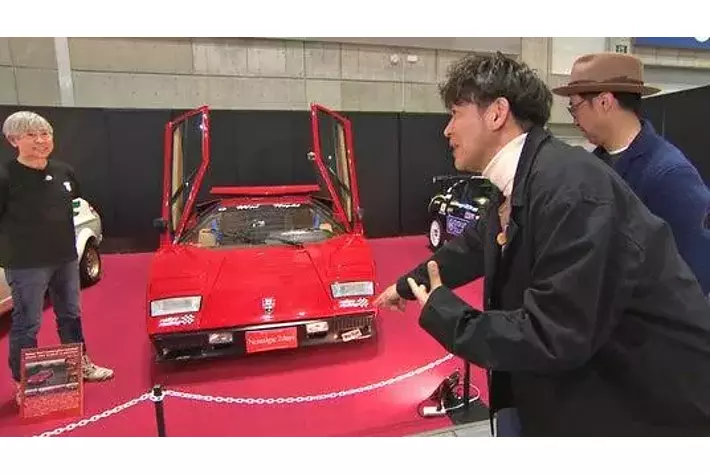 最初に登場したのは、昭和の少年たちの心をわしづかみにしたスーパーカーブームでも人気No.1だった1台。ランボルギーニ カウンタックの真っ赤なボディーに、空高く上がるシザーズドアに一同、大感激!岡田さんは「スーパーカーブームの時、ようこういう柵があって、みんな写真撮ってたの」と、憧れの1台を目の当たりにした少年時代を回顧。矢作も「卒業文集、このカウンタックを上から(見た)のを描いているからね」と続いた。さらに、このカウンタックは世界に3台しかないというレア中のレアカーだと知らされる。その理由は?