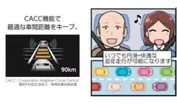 渋滞も楽々!前のクルマにスムーズに追従!お子様連れの帰省は疲れる・・・高速道路の渋滞で「前のクルマについていけたら楽なのに」と思ったことはありませんか。ITS Connectは前のクルマと通信しブレーキやアクセルの情報を得ながら追従走行をサポートしますので、スムーズに前のクルマについていくことができます。