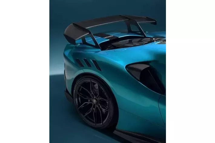 空力性能には手を加えず、レーシングイメージを強調するためにカーボン製サイドミラーカバーを新設定。さらに、米国のホイールブランドVossen(ヴォッセ)との共同開発により、専用の鍛造アルミホイールをリリース。前後でサイズを変えることで、ミッドシップならではのウエッジシェイプを強調。