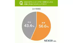 56.6%と半数以上が新車がいいと回答しており、その理由としては「自分で好きにカスタマイズしたい」「中古車は乗るのが怖い」「資産になるから」などがあがっていました。