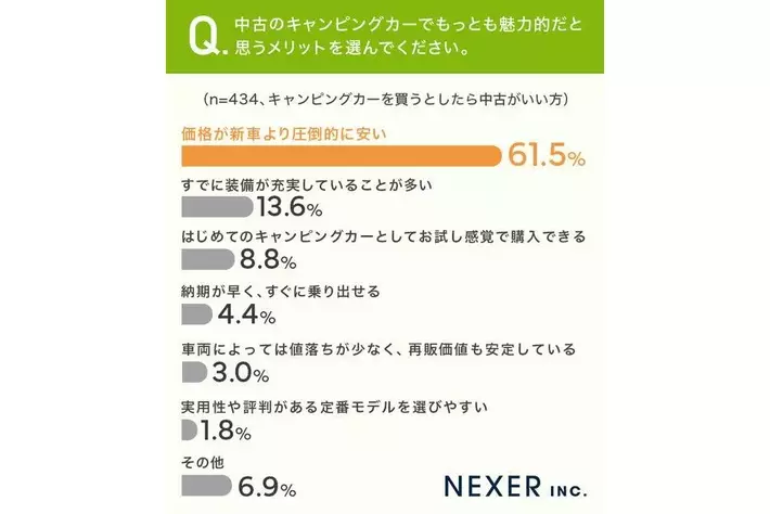 質問5:中古のキャンピングカーでもっとも魅力的だと思うメリットを選んでください。