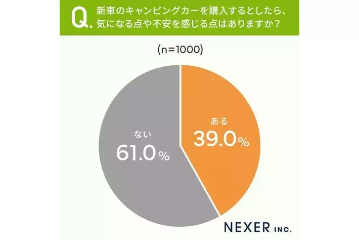 39%の方が、新車のキャンピングカーに気になる点や不安を感じる点があると回答しました。